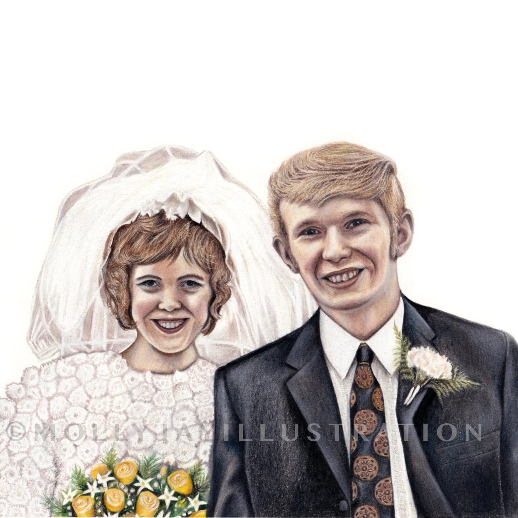 I use multiple reference photos to create each portrait and can combine them all together to bring your family together as one.